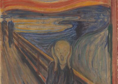 Едвард Мунк је норвешки сликар и графичар, најпознатији по својим експресионистичким делима која истражују теме љубави, смрти и егзистенцијалне тескобе. Његов рад је био револуционаран за време када је створен, а његова способност да пренесе дубоке емоције кроз боје и облике учинила га једним од најутицајнијих уметника 19. и 20. века. Мунк је често користио лична искуства као инспирацију за своја дела, што им даје снажну емоционалну тежину.